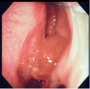 左の鼻に鼻茸ができて気道が狭くなっています。